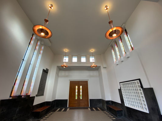 Volledig nieuw is de nu aangebrachte elektriciteit en de armaturen, die hier een tweede leven krijgen, in onbruik geraakt nadat de sjoel op de Linnaeusstraat sloot in de negentiger jaren.